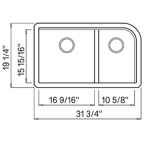 Overal Dimensions: 31.75" x 19.25" x 9.5" ; Inner Dimension (Left Bowl): 16.5625" x 15.9375" x 9"; Inner Dimension (Right Bowl): 10.625" x 15.9375" x 9"; Minimum Cabinet Size: 33"