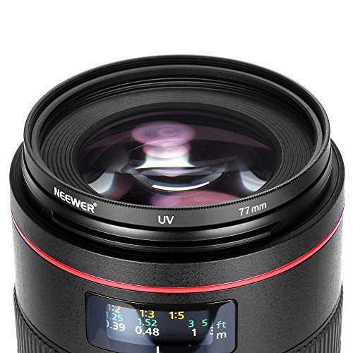 - Feature : This 77mm UV filter will fit any brand of lens with a 77mm filter thread, digital or film / The UV filter protects your camera lens from dust, moisture, scratches and fingerprints / Camera filter absorbs ultra violet rays without an increase in exposure to provide a clearer picture as well as protection for your valuable lens / Double threaded UV lens for use with a lens hood or another filter / Multi-coated optical glass