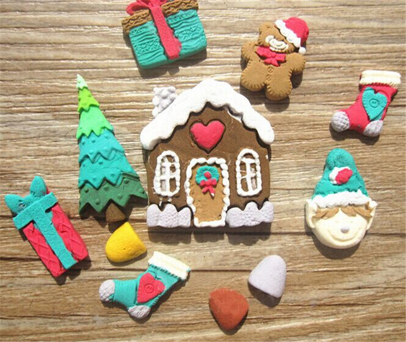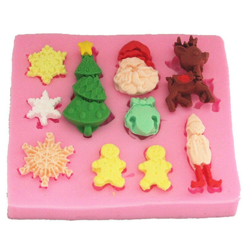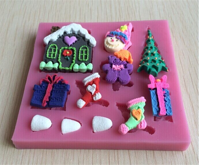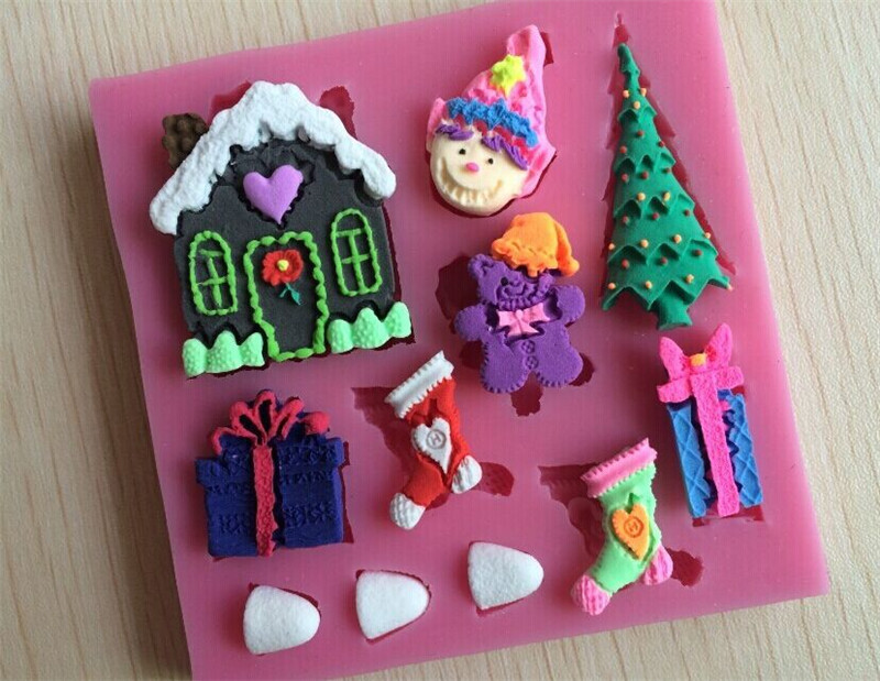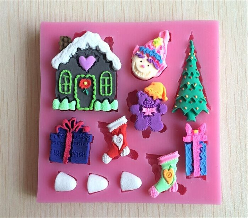 Cartoon Christmas Series Gift Shape Chocolate Mould 3D Christmas Tree House Sock Gift box Silicone Candy Cake Decorating Mould