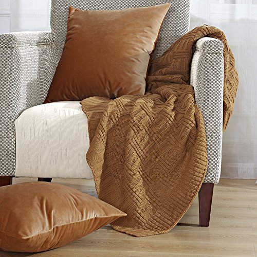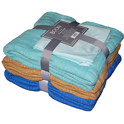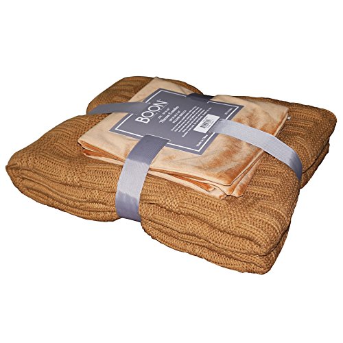 BOON Brooke Cable Throw with 2 Pillow Shells Combo Set, Iced Coffee