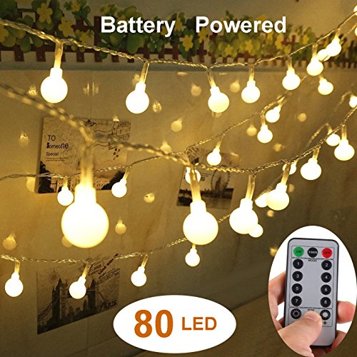 Yesee 33ft 80 LED Battery Operated String Lights with Remote & Timer, Outdoor / Indoor String Fairy Lights Decor for Bedroom Patio Party Christmas.(IP65 Water Resistance, Warm White)