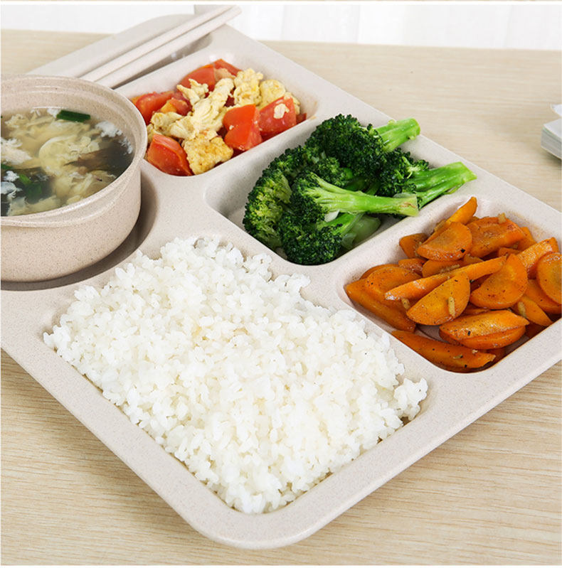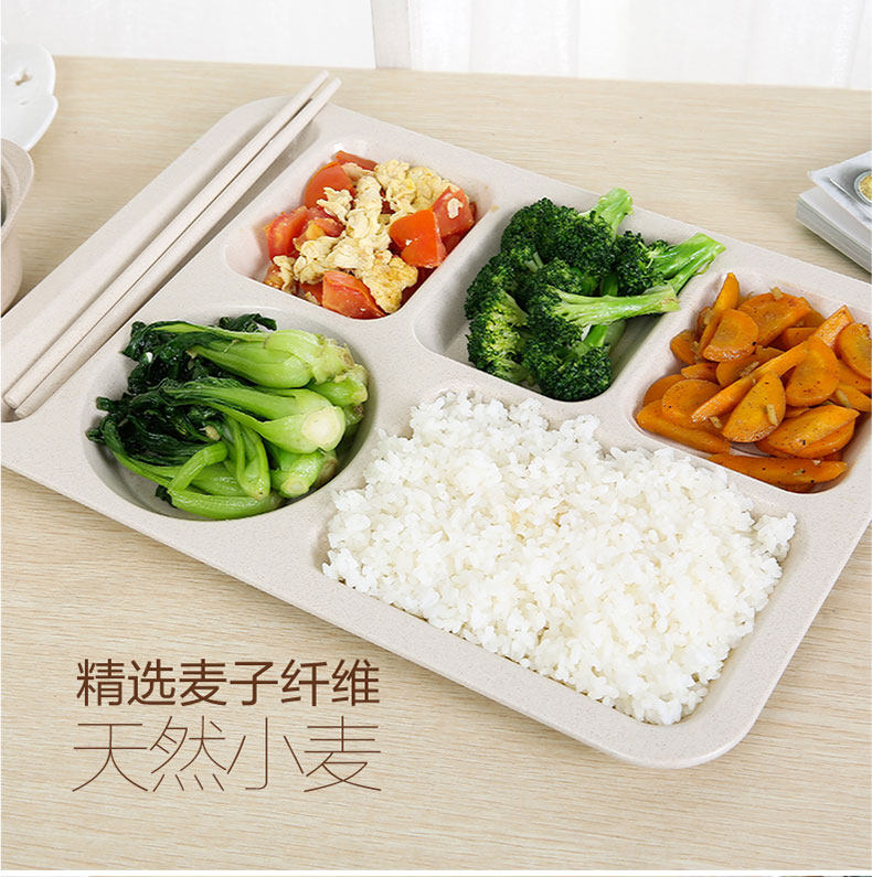 五格分隔微波炉可用分餐盒 日韩长方形学生多格食堂餐盘