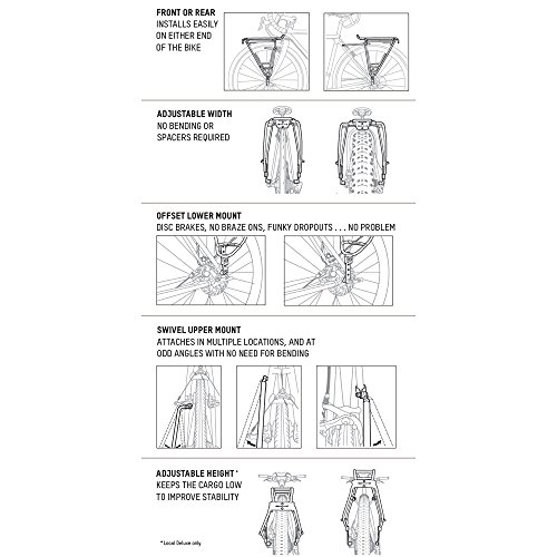 Studio : Blackburn Publisher : Blackburn Binding : Sports Product Description Versatility is the name of the game with this robust basket rack. You can install it front or rear, and the basket design makes it easy to carry groceries, extra clothes or whatever you need for everyday adventures. It?s both height -and width-adjustable and disc-brake compatible to fit almost any road or mountain bike. It also features an integrated clip to mount a Blackburn light for added visibility and nighttime riding. 0