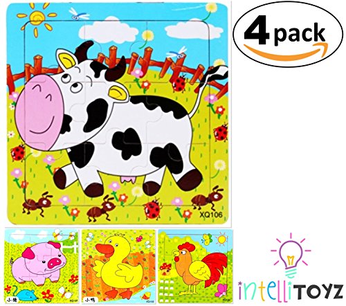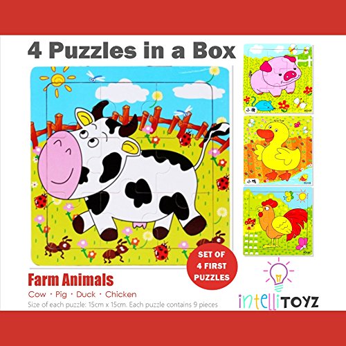 Studio : INTELLITOYZ Publisher : INTELLITOYZ Binding : Toy Product Description The INTELLITOYZ Wooden Puzzles are a great educational toy to help with Brain Boosting Skill Building! Kids love puzzles! They're fun, brain-stimulating and they'll learn whilst they're playing! - Includes 4 colorful Farm Animal puzzles made of Plywood: Cow, Duck, Pig and Chicken. Each puzzle contains 9 pieces.