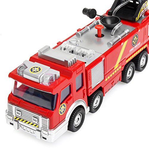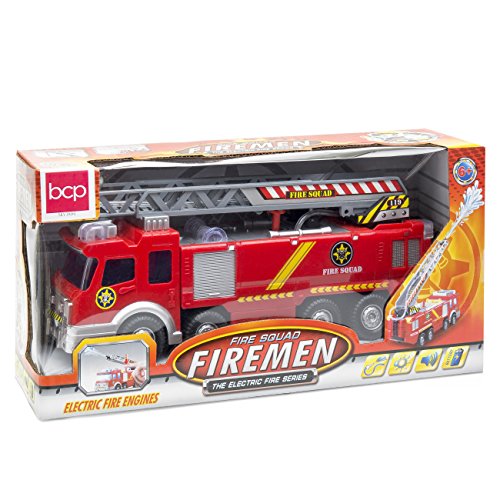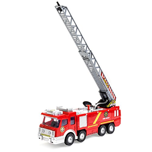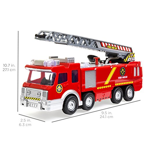-. Title : Best Choice Products Bump and Go Electric Fire Truck Toy w/ Lights, Sound, Extendable Ladder, Water Pump Hose (Red)