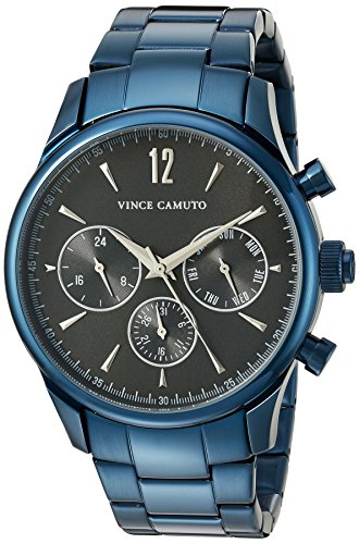 -. Binding : Watch -. Brand : Vince Camuto -. Color : Navy Blue -. Department : mens -. EAN : 0086702585168 -. Feature : Navy blue case with push buttons; mineral crystal lens; semi-matte grey sunray dial with day, date and 24 hour sub dials; silver-tone hands and markers; white P.R.Inted outer minute track / Navy blue adjustable link bracelet; fold over clasp with double push-button safety / Japanese-quartz Movement / Case Diameter: 42mm / Water resistant to 50m (165ft: in general, suitable for short periods of recreational swimming, but not diving or snorkeling -. Label : Vince Camuto -. Manufacturer : Vince Camuto -. Model : VC/1085DGNV -. MPN : VC/1085DGNV -. PartNumber : VC/1085DGNV -. ProductGroup : Watch -. ProductTypeName : WATCH -. Publisher : Vince Camuto -. Studio : Vince Camuto -. Title : Vince Camuto Men's VC/1085DGNV The Chairman Multi-Function Dial Navy Blue Bracelet Watch -. UPC : 086702585168