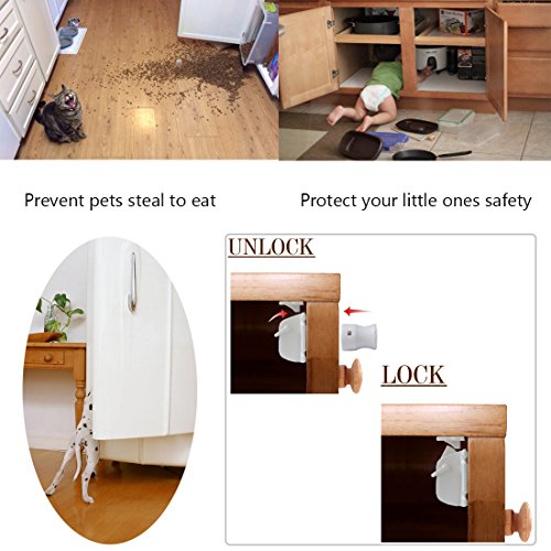 - PREVENT PETS STEAL TO EAT - Baby Magnetic safety locks also put a stop to the cats and dogs stealing treats from cupboards
