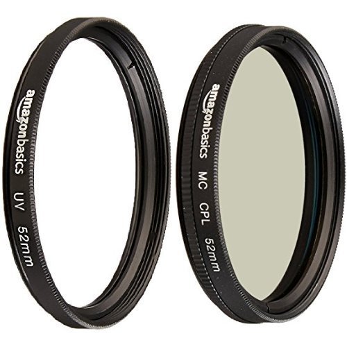 - Includes an AmazonBasics UV Protection Lens Filter (52mm) and an AmazonBasics Circular Polarizer Lens (52mm)