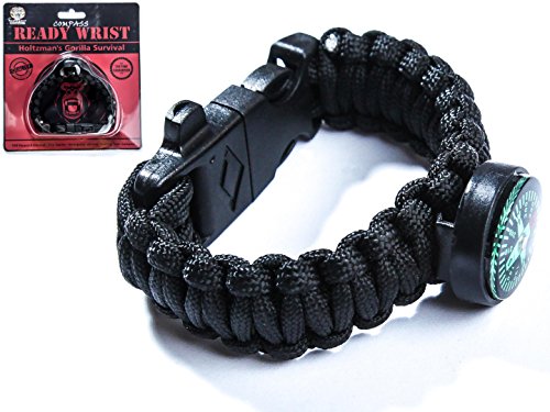 Ready Wrist: 550 Paracord Emergency Bracelet Is a Parachute Cord Survival Bracelet with an Emergency Whistle, Knife Like Cutting Tool, Flint, & Compass (Black)