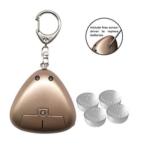 EASY TO USE AND CHANGE BATTERIES: Just pull the metal keychain of the self-defense alarm if you were in any trouble. Easy to change the 4*LR44 button batteries with mini screwdriver(Included)