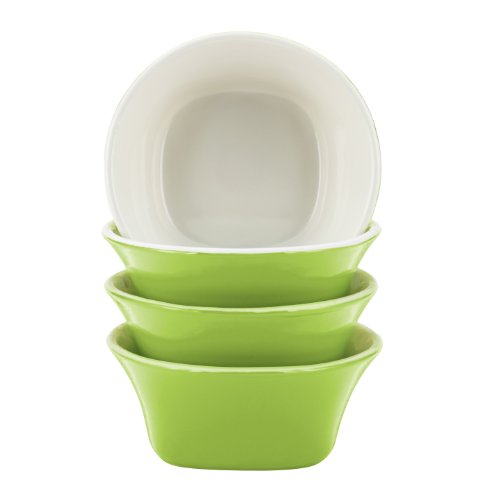 Enjoying a portion of fruit at or even between meals is more fun with the Rachael Ray Dinnerware Round & Square 4-Piece Stoneware Fruit Bowl Set. Perfectly-sized and shaped for a serving of fruit, relishes and more, the 10-ounce bowls are crafted from durable, versatile stoneware that keeps hot foods warm and cold foods chilled. The bowl set sports bold two-tone color and design that expresses Rachael's distinctive eye for line, shape and tabletop style. Place the bowls out for berries, halved grapefruits, avocadoes drizzled with aged balsamic, or set out individual portions of Rachael's Garlicky Holy Guacamole at a casual dinner for friends and family. The bowls are freezer, microwave and dishwasher safe for even more food and entertaining options with easy cleanup afterward. Best of all, the bowls coordinate with the other vibrant pieces in the Rachael Ray Round & Square collection and partner with many of her other dinnerware patterns as well as her serveware and kitchenware. Serve up sweet, refreshing individual portions of fruit and more, with the stylish, versatile Rachael Ray Dinnerware Round & Square 4-Piece Stoneware Fruit Bowl Set.Feature