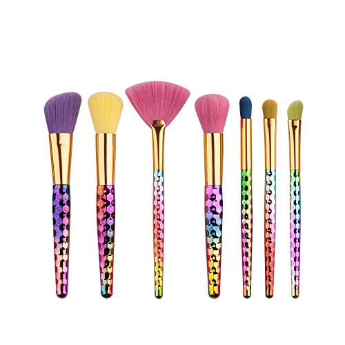 -. Title : Tmalltide Colorful 7pcs Fan Makeup Brushes Set Honeycomb Rainbow Handle Cosmetic Foundation Eyshadow Blusher Powder Blending Brush Beauty