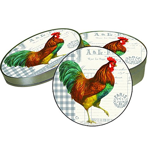 Paperproducts Design 26012 Absorbent Pulpboard French Rooster Coaster in Gift Tin, Set of 12