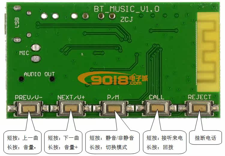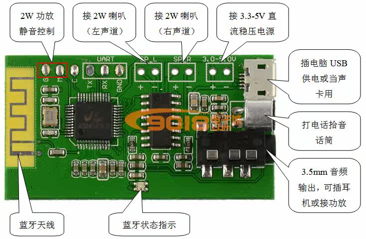 普通音箱改装蓝牙音箱,蓝牙音频,USB声卡,蓝牙接/拨电话等。