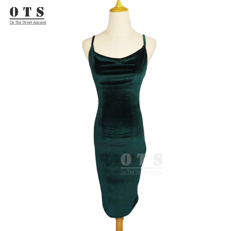 High Quality Women 2016 New Sexy Fashion Autumn Sleeveless Spaghetti Strap Evening Party Mid Velvet Dress Robe Velours Strap 262