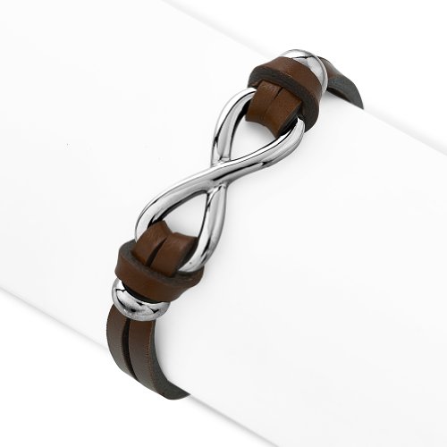 -. Title : Stainless Steel and Leather Infinity Sign Double Strand Wrap Bracelet