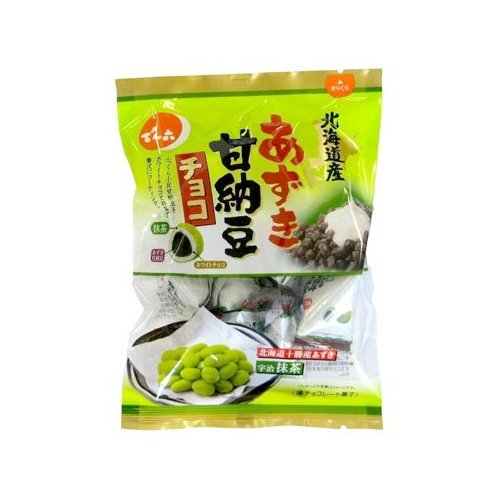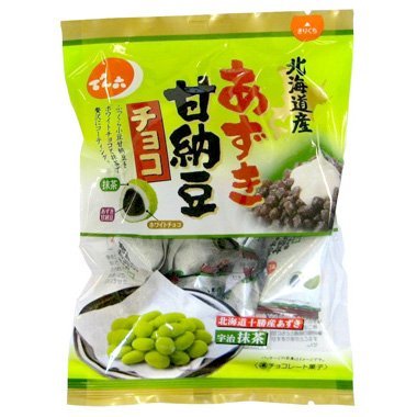 原材料:砂糖、小豆、植物油脂、デキストリン、還元麦芽糖水飴、全粉乳、ココアバター、抹茶、ソルビトール、乳化剤、重曹、香料、(原材料の一部に大豆を含む)