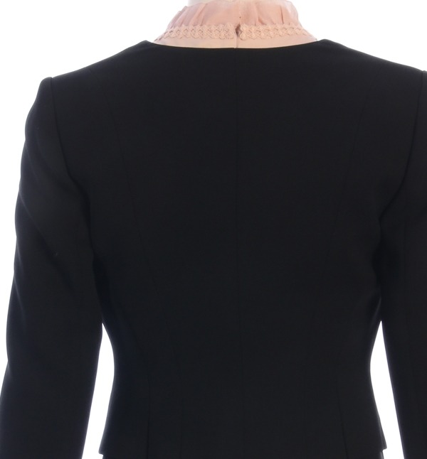 SATIN, 군더더기없이 심플한 디자인으로 차분하여 포멀한 분위기를 연출하는 노카라 미니 자켓입니다