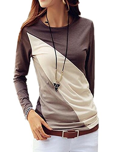 -. Title : 【 Big laugh 】 レディース トップス 長袖 タイト カジュアル ライン カットソー 切替 バイカラー Uネック 丸首 ( ブラウン , L )