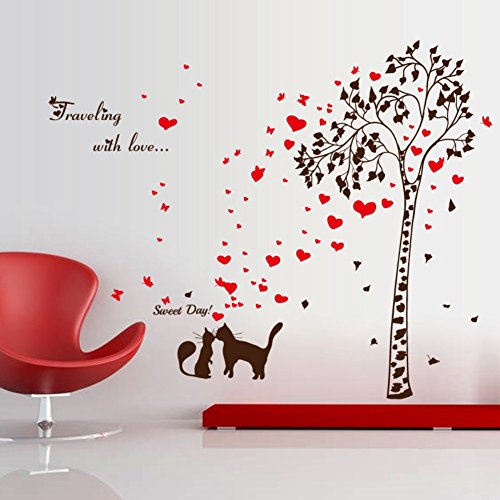 -. Feature : Meterial: High Quality PVC; Size:60 x 90cm / This Valentines Day style wall decal is sure to bring your living room with a feeling of cool and peace. Gather your families here and have fun / Special Couple Cat under Heart Tree design for this is decorative and make your room special. It will give an amazing touch to your home interior / Simple and Convenient, free combination, color will not fade and stay bright and colorful, When you peel them off, there is without leaving traces on your walls and won't damage the decals, which could be used in second time / Suit for any Clean Tile, Glass, Doors and Windows, Bedside, Room, Mirror, Firewall, Furniture, Electrical Appliances, Plastics, Metal and other Smooth Surface. When they are dirty, you can scrub them