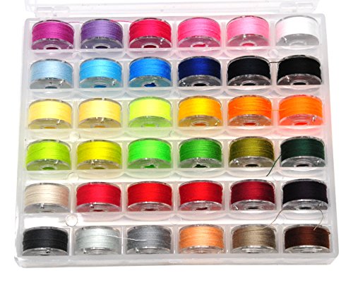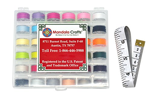 Mandala Crafts Prewound Embroidery Sewing Thread Bobbin Case Kit for Brother Babylock Singer Machine (36 Colors)