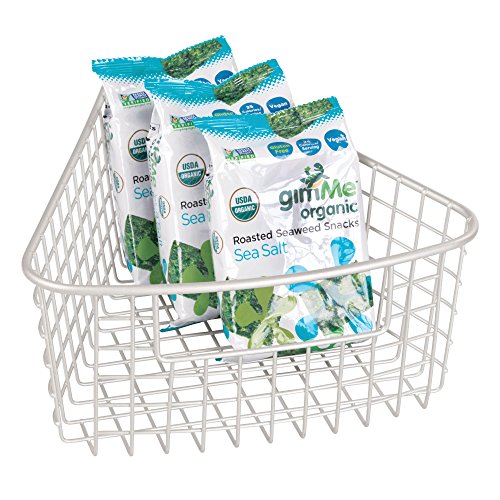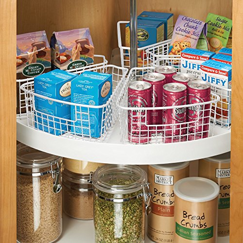 mDesign Kitchen Lazy Susan Wire Storage Basket with Handle for Snack Packs, Canned Goods - 1/8 Wedge, Matte White