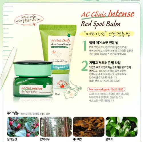 -. Binding : Misc. -. Brand : Etude House -. Color : red spot balm -. EAN : 0890927850617 -. Feature : Apply spot treatment directly to pimples and blemishes, after using gel lotion. Avoid excessive facial rubbing / this product not only helps reducing red spots and pimples, it only helps you remove brown spots on your face / For external use only / Avoid contact with eyes -. Label : Etude House -. Manufacturer : Etude House -. MPN : 8806382684904 -. PackageQuantity : 1 -. PartNumber : 8806382684904 -. ProductGroup : Beauty -. ProductTypeName : BEAUTY -. Publisher : Etude House -. Studio : Etude House -. Title : Etude House AC Clinic Intense Red Spot Balm -. UPC : 794628310015