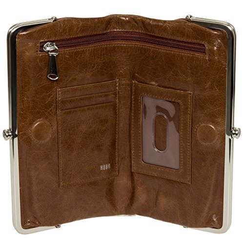 Seamlessly mixing style and function, this Vintage Lauren Leather Clutch Wallet by Hobo transitions perfectly from day to night! This tri fold wallet is made from top-grain genuine leather that has been extra tumbled for a unique, broken-in vintage look. The interior of this clutch contains 3 card slots, 1 clear ID window, and a roomy zippered pocket that's kept secure by a magnetic closure. One clasp compartment features 2 bill compartments & 6 card slots while the other contains a zipper pocket and space for your cell phone. The abundance of storage compartments gives you plenty of options to keep your essentials organized. Measures 8.75" x 5" x 2", folds out to 9.25" wide.Feature