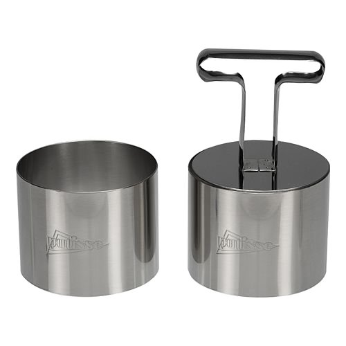 [Product Information]- Set of 2 stainless steel round cake rings with matching cake press for easy removal, measuring 2 3/4 inches in diameter