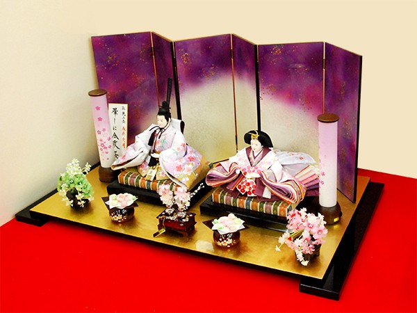 ・台座・屏風等には落ち着いた色目の雛人形セット。