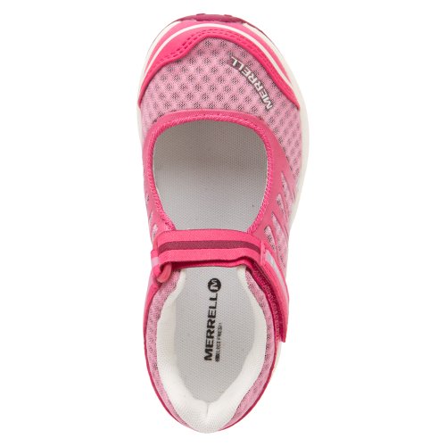 Studio : Merrell Publisher : Merrell Binding : Apparel Product Description She can hit the road for miles and miles with the Merrell Mix Master Jam MJ sport shoe. Made of synthetic leather and mesh, this lightweight girls' mary jane shoe easily transitions through multiple adventures with an adjustable hook-and-loop instep strap for a quick, secure fit. The removable, 2mm contoured EVA insole supports the foot for comfort and shock absorption. A padded collar guards against chafing and keeps out debris. The Merrell Mix Master Jam Mary Jane casual shoe is finished with a sticky rubber outsole that adapts to changing surfaces on the fly. 0