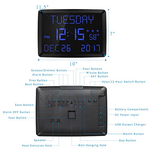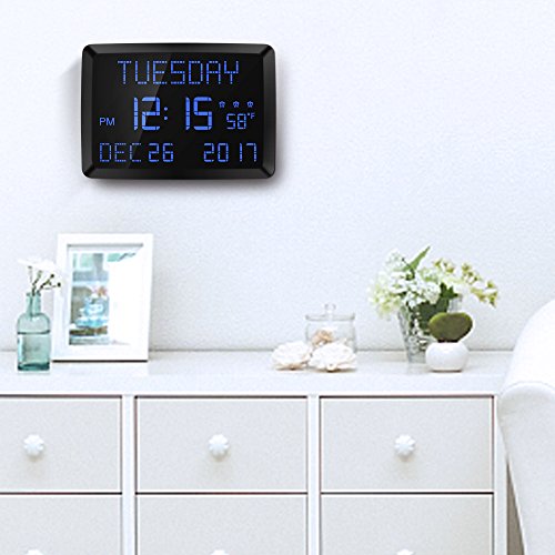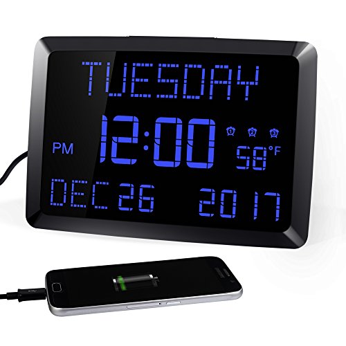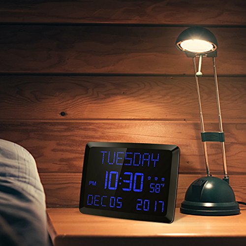 ✔ The Best Alarm Day Clock for Elderly: The 11.5 inch Extra Large LED display clearly shows the time, date, the day of the week in large numbers that is easy to read. What's more, it will monitor and display the indoor temperature accurately in ℉/℃, perfect calendar clock for elderly, seniors, impaired vision and dementia patients.