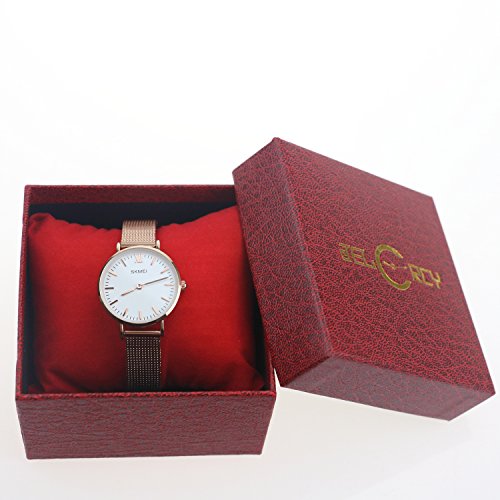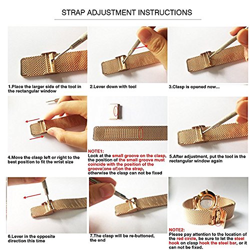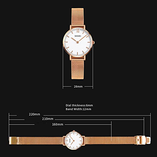 - 2.Material:Battery code:SR626SW;Precise Movement;Rose gold-tone case with mineral dial window;Stainless steel band and back;