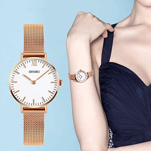Women's Analog Quartz Dress Watch,Waterproof Simple Casual Wrist Watches for Ladies;Rose Gold,White Dial