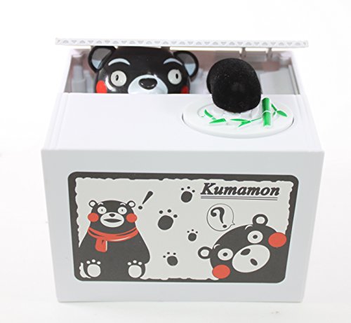 Funny Kumamon Black Bear Stealing Coin to Bamboo Money Box Bank Home Decor Gift US Seller