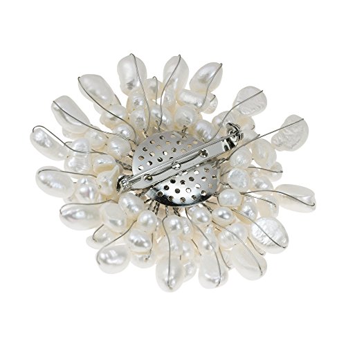 -. Feature : Material: Stainless steel, Jewelry wire / Stone: Cultured Freshwater Pearls / Design Measurement: 60 mm (2.36 in) / Style: Pin/Brooch | Pearl Grade: B-C / Color: Pearl | Weight: 28.7 grams