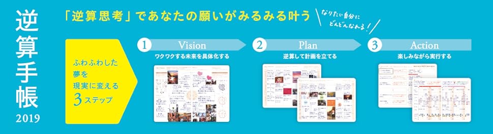 あなたの理想の未来=ビジョンを、「逆算手帳」と一緒に実現していきましょう。