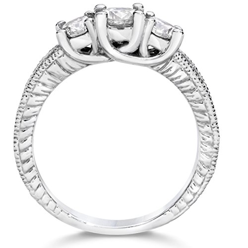-. Title : 1ct Vintage Diamond Three Stone Engagement Ring 14K White Gold