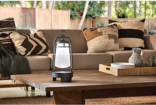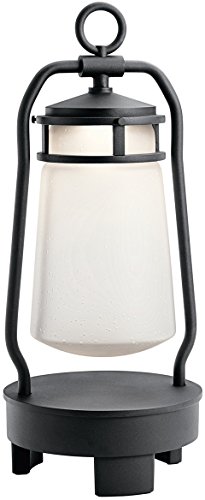 Kichler Lighting 49500BKTLED Portable LED Lantern with Bluetooth Speaker, Textured Black Finish with Etched Seeded Glass
