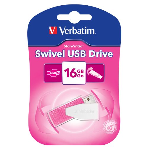 Verbatim 16GB Store 'n' Go Swivel USB 2.0 Flash Drive, Hot Pink 49813