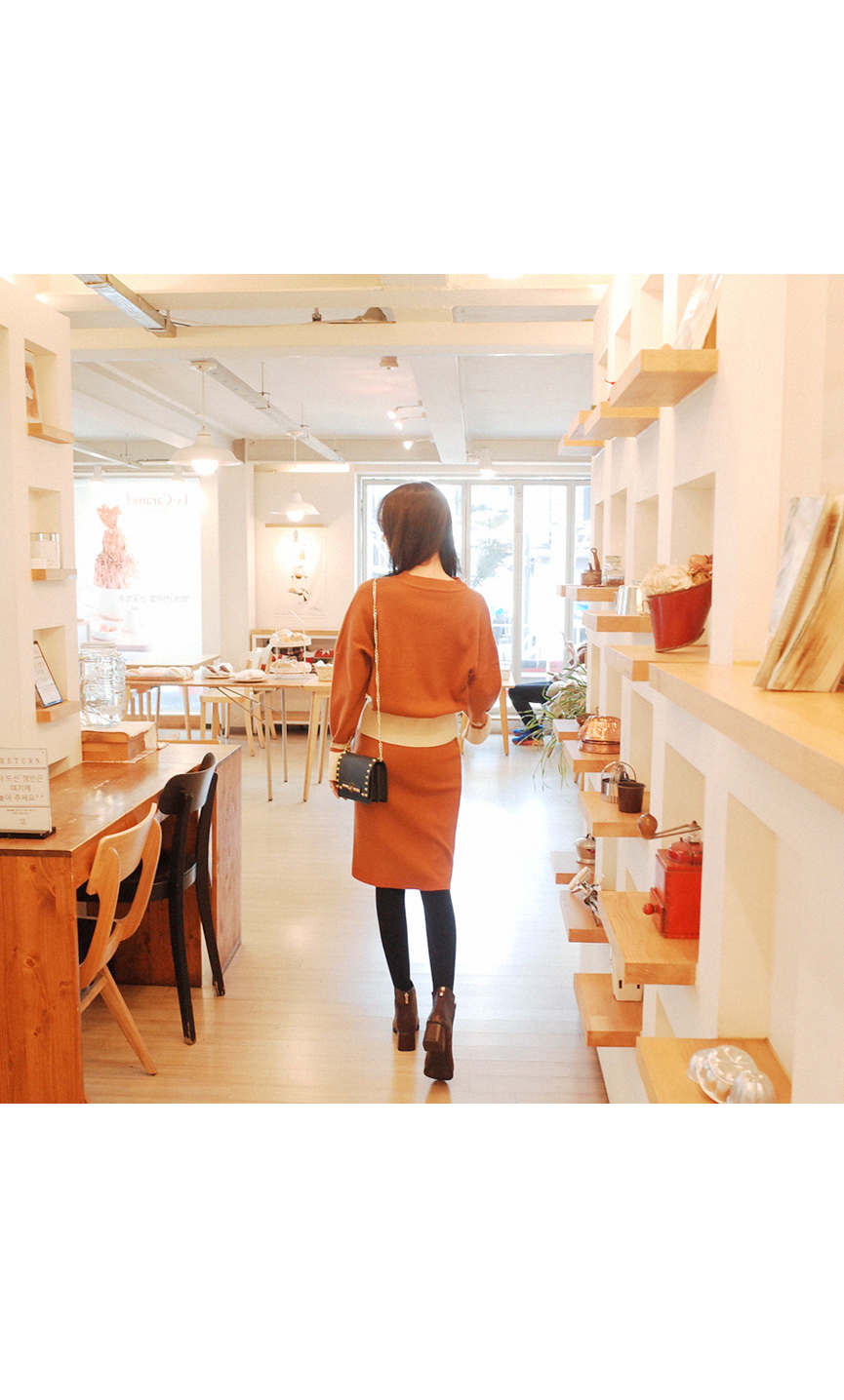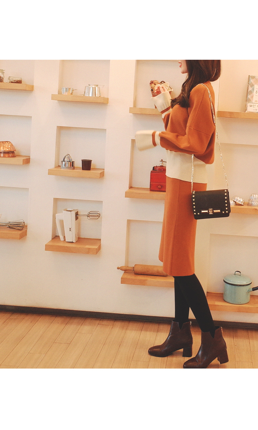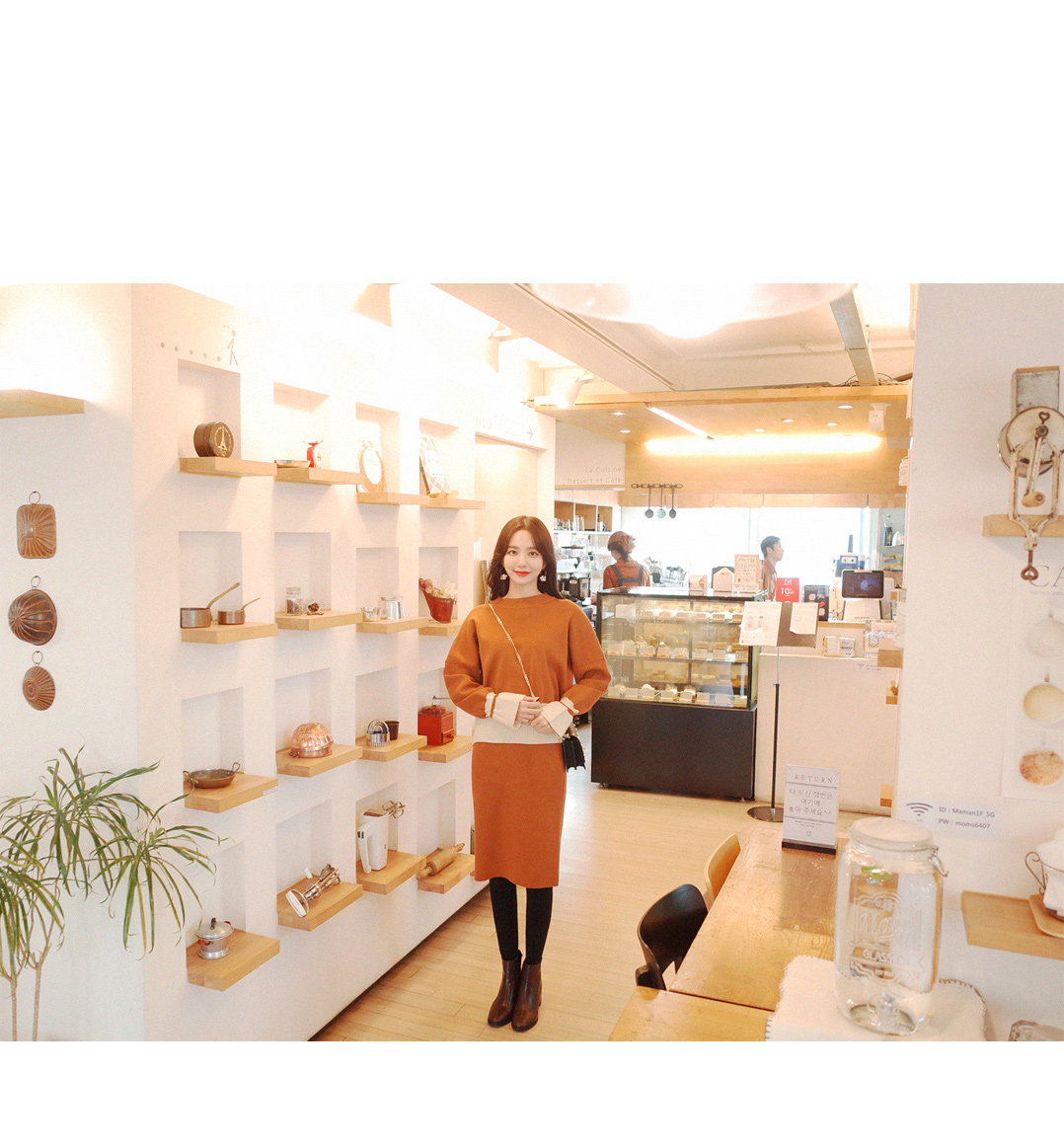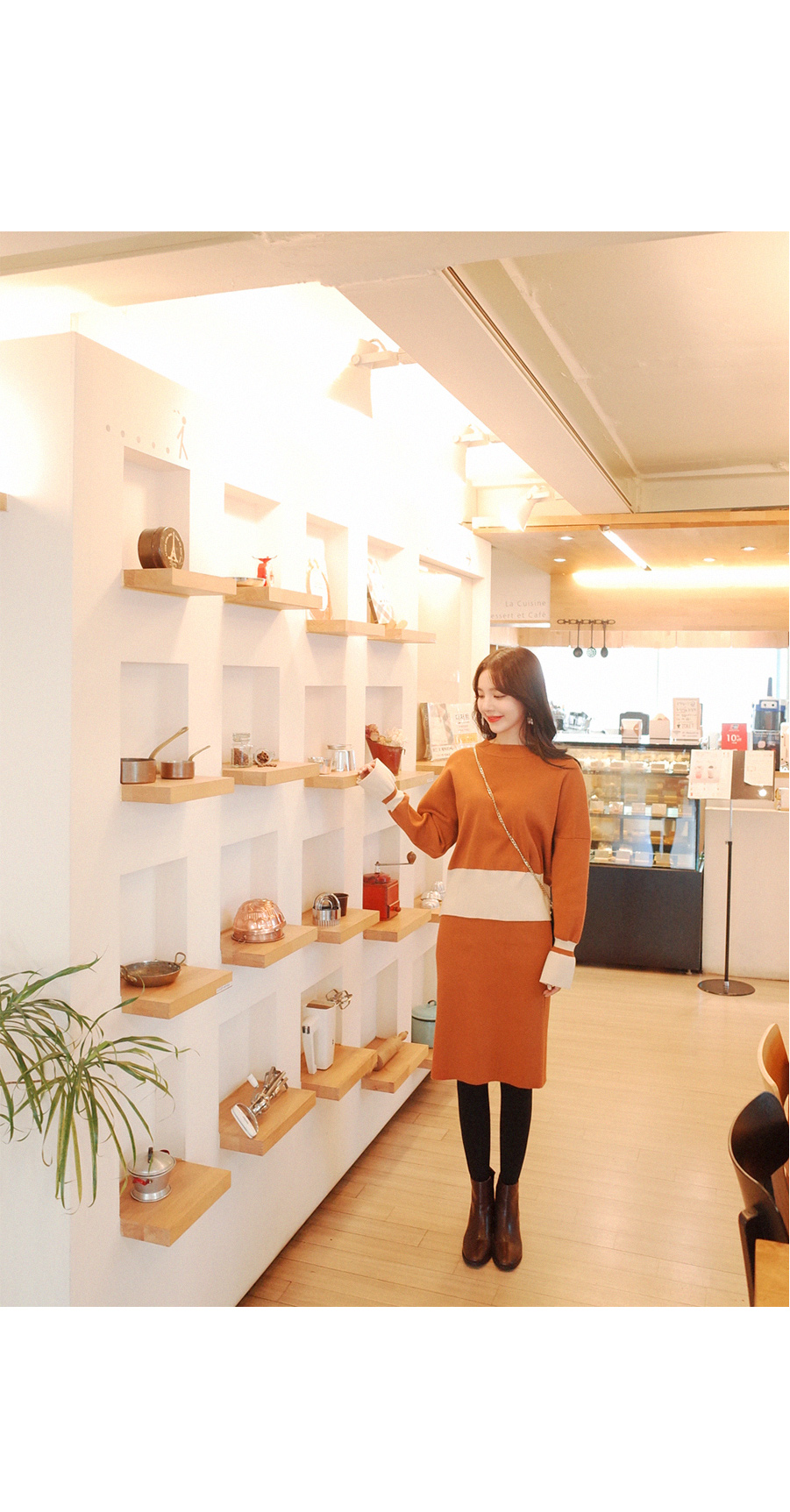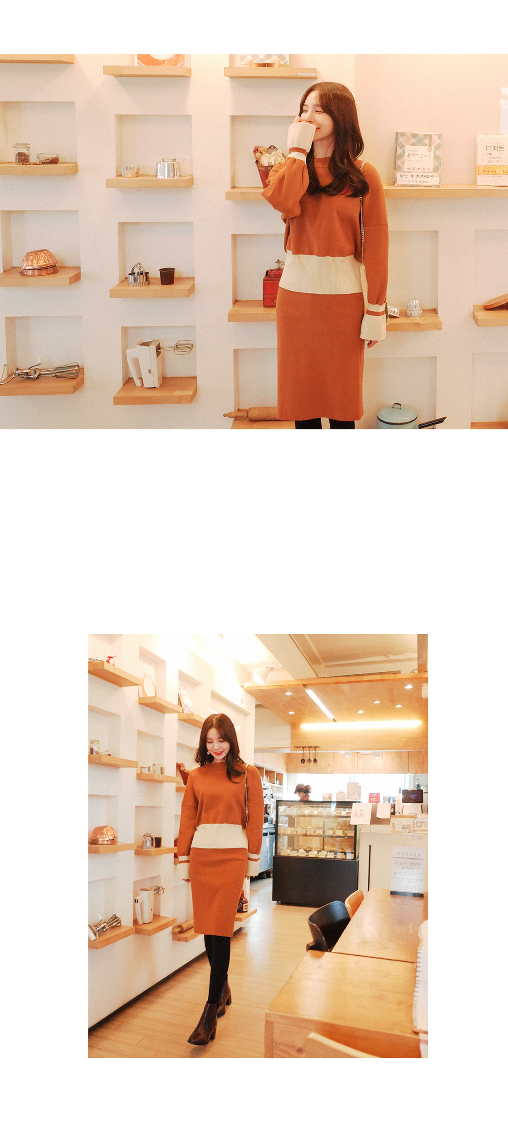 따뜻한 컬러감이 감성적인 니트 투피스입니다