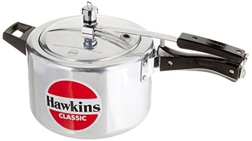 The Classic is Hawkins' largest-selling, most popular range of pressure cookers - perhaps because of its attractive combination of features, benefits and price. This range was the first to be introduced by Hawkins and has been kept up to date by numerous innovations and improvements over the years. The latest improvement, a superior pressure regulating system that controls pressure to a narrower, more efficient range, reduces sprouting of frothy foods (such as dal) and is easier to insert and remove. The safety valve is located under the lid handle bar so that when it operates the steam is safely deflected downwards. The gasket has minimum exposure to steam inside the cooker, does not rub every time the product is opened and closed - so lasts longer. Suitable for gas, electric, ceramic and halogen cooktops. Stay-cool handles. Fixed sturdy pivot does not put pressure on the plastic handles as it is a part of the metal handle itself. Thus handles last longer. Made from commercially pure, virgin aluminum. Mirror polished; interior and base matt finish. Inside fitting lid opens only when pressure falls. Stay cool handles. These are thermally efficient, mirror polished aluminum, with matt-finished base and interior. Pressure is regulated automatically to optimum levels for speed cooking. Features a 'goof-proof' lid that seals from the inside like a jetliner door, ensuring greater safety. A multiple stem vent prevents overpressure, and is listed by Underwriters Laboratories Inc.Feature