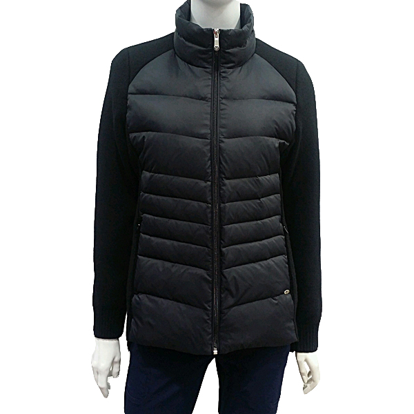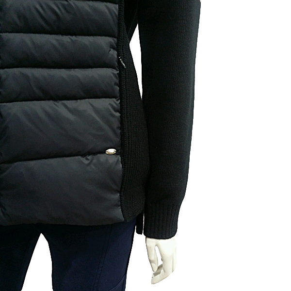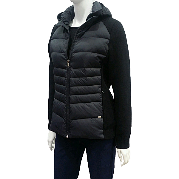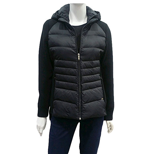 모자 탈부착으로  우픈 패치점퍼   스타일로 앞판에 다운을 넣고 니트부분에는 방풍 안감을 사용하여