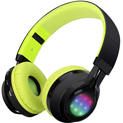 Bluetooth Headset, Riwbox AB005 Wireless Headphones 4.0 with Microphone Foldable Headphones with TF Card FM Radio and LED light for Cellphones and All Bluetooth Enabled Devices (Black&Yellow)