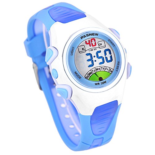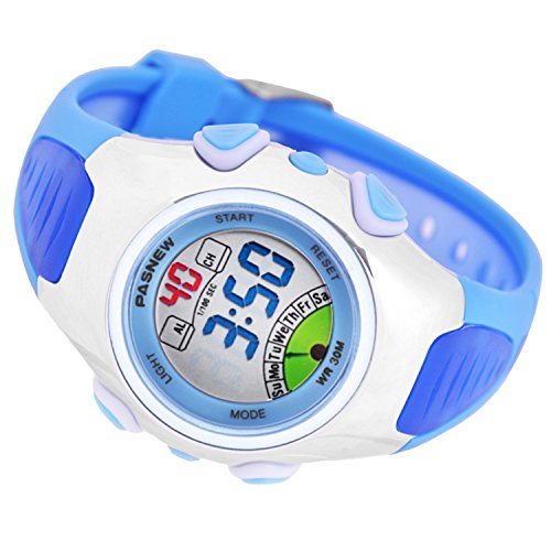 5. MULTI-FUNCTIONAL: Design Calendar Date Window, Time/date, 12/24 hour format, 30M Waterproof, Noctilucent, EL Back Light Display, Shock Resistant, Stopwatch.Easy to set up. It is able to operate it by children own. Nice watch for elementary age kids.Best present for your kids.