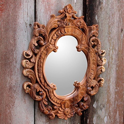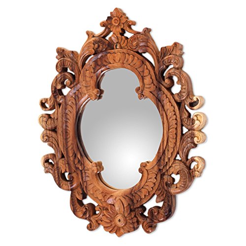 NOVICA Natural Suar Wood East Meets West Hand Carved Wall Mirror From Indonesia 'Mataram Rococo'