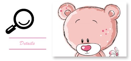 -. Feature : Includes a pink teddy bear, flowers and hearts / Applies to any smooth surface / Removable and reusable with no sticky residue / Dimension of product sheet: 20Wx27L