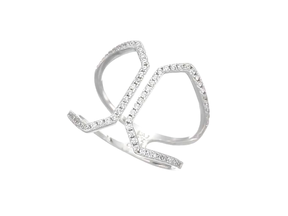 Rhodium Plated Sterling Silver White Cubic Zirconia Ring, Size 7