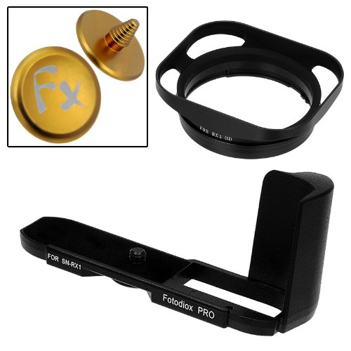 Fotodiox Pro Camera Kit for Sony Cyber-shot RX1 DSC-RX1 Digital Camera; Includes - All Metal Black Camera Hand Grip with Battery Access, Dedicated Bayonet Rectangular Lens Hood (replaces Sony LHP1)