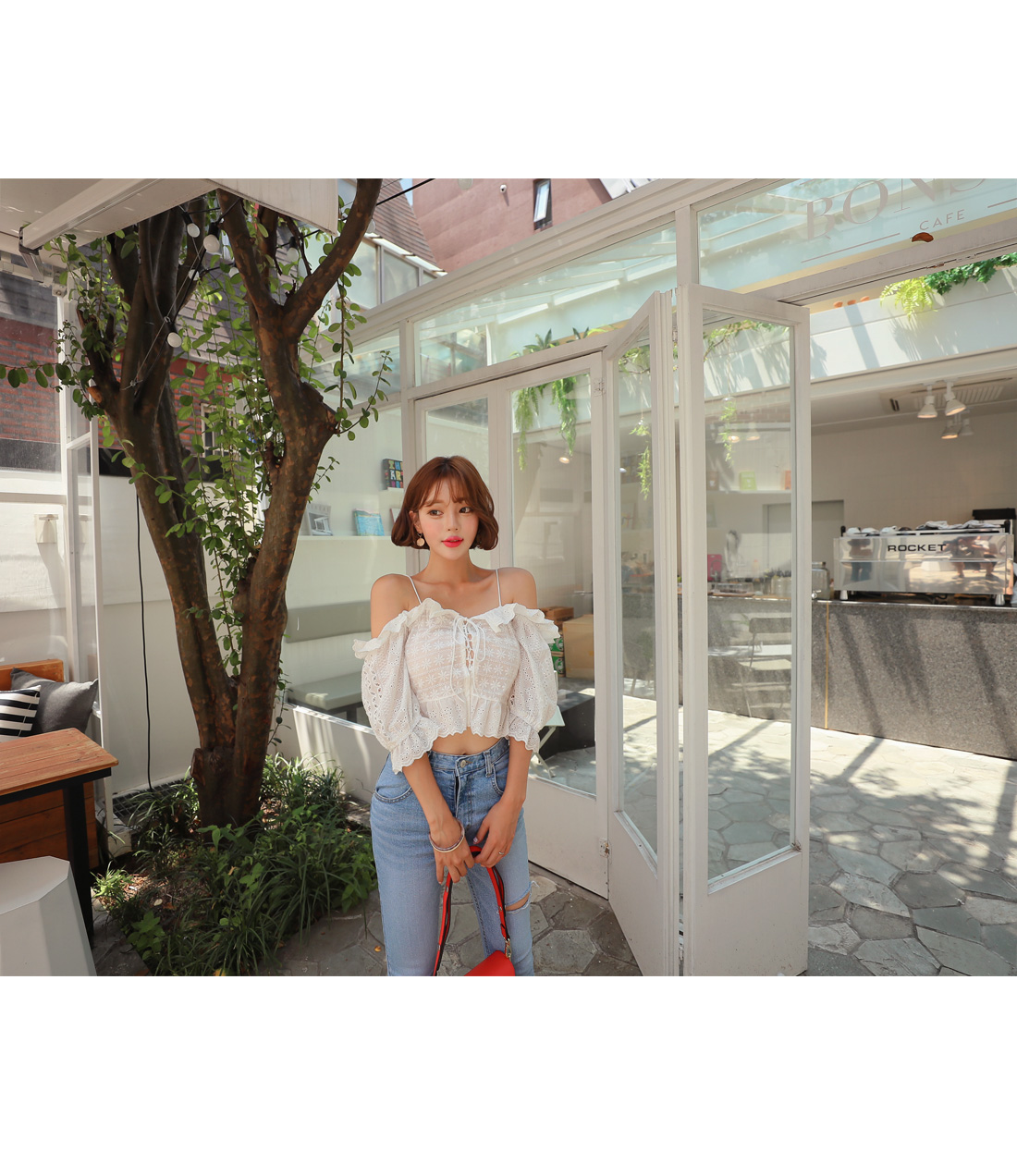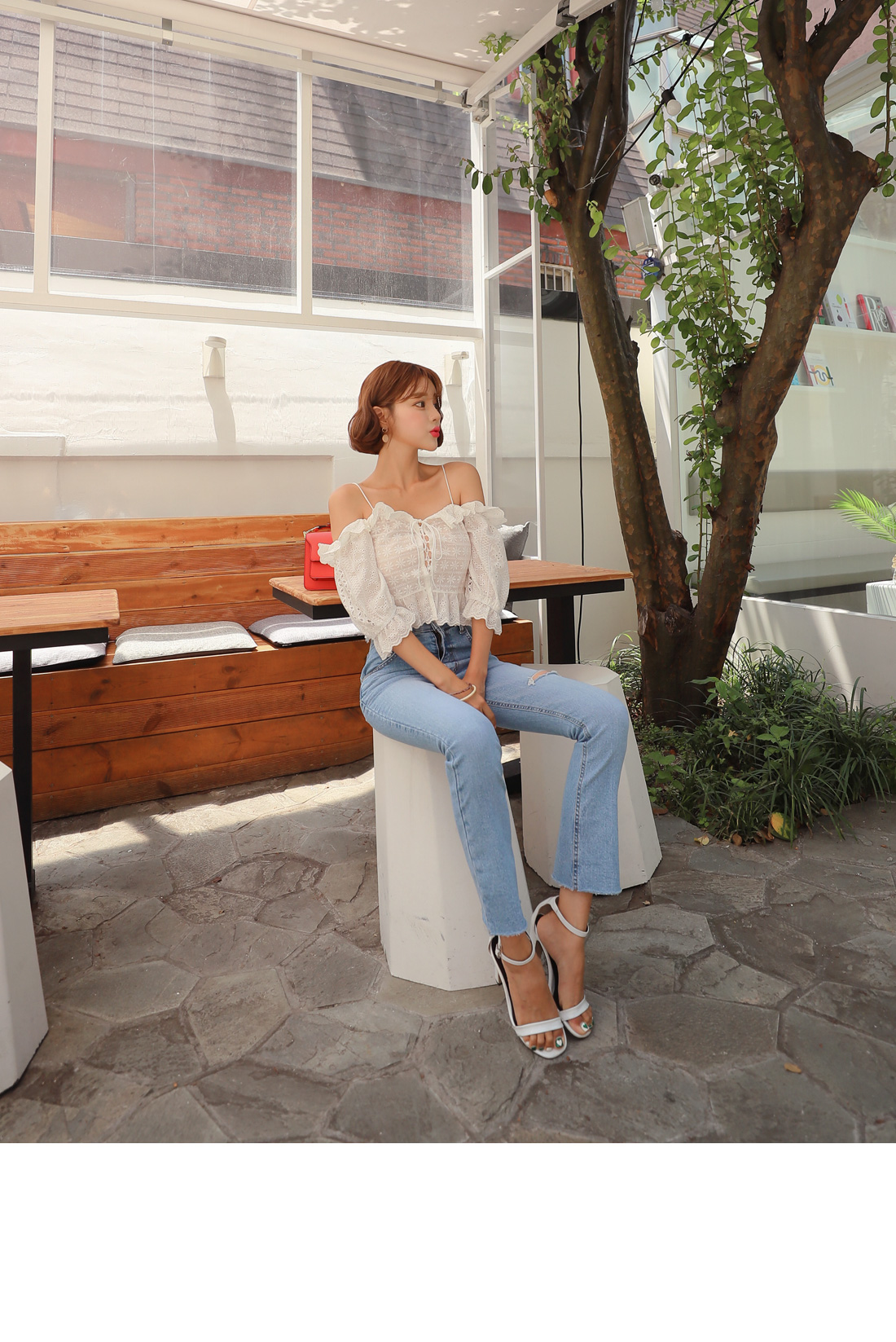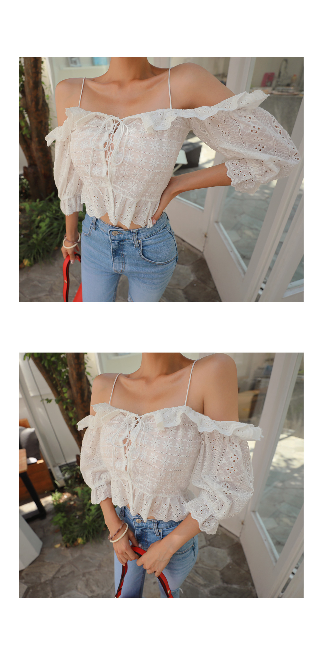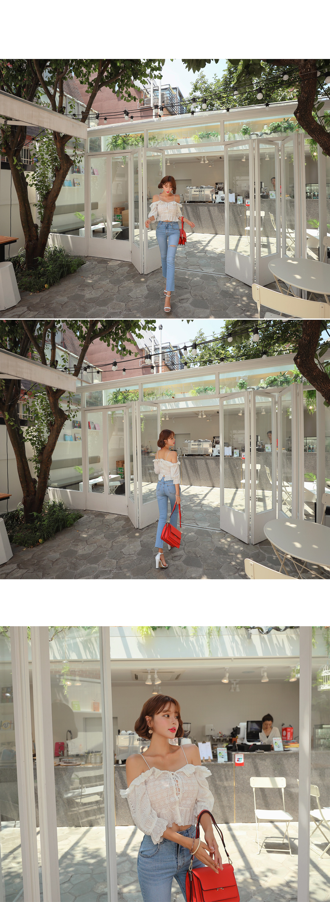 얇은 두개의 끈으로 제작되어 여리여리한 숄더라인을